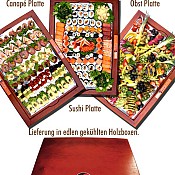 Familien-Feiern, Treffen der Geschäftsleitung, Produktpräsentationen auf Messen, Eröffnung Ihres neuen Firmensitzes – wir runden das Ganze kulinarisch ab. Das Liefern von Sushi-, Obst- und Canapé-Platten gehört zu unserem täglichen Geschäft. Von Currywurst bis Austern-Essen für 10 bis 1.000.000 Personen. Wir sind durch unseren festen Kundenstamm in allen gastronomischen Variationen geprüft. Ihre Idee ist unser Projekt – wir machen aus Ihrem Wohnhaus, Garten oder Büro ein Restaurant.