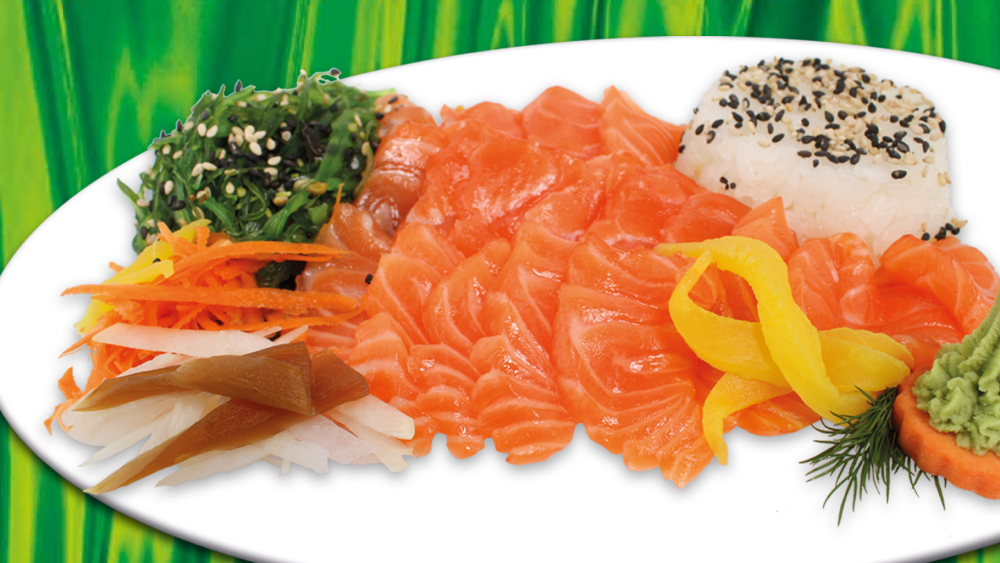 - gemischtes Sashimi (Lachs, Thunfisch, Garnele, Jacobsmuschel, Makrele, Butterfisch, Sepia)